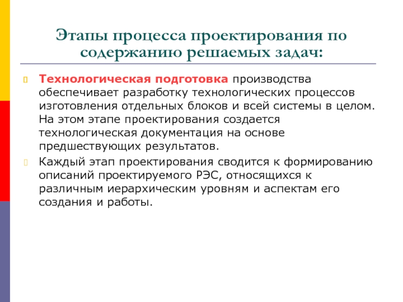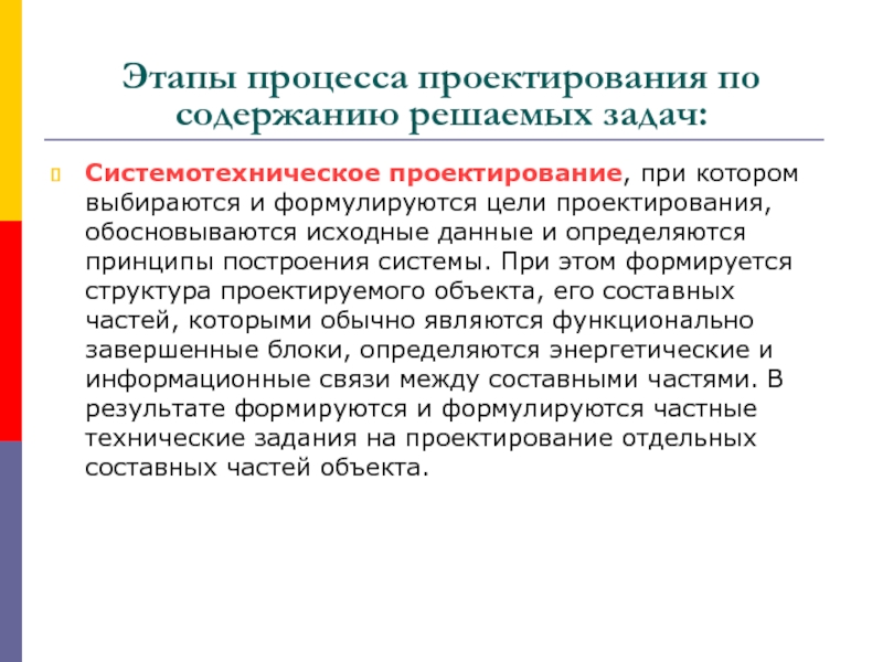 Слайд 6Этапы процесса проектирования по содержанию решаемых задач: