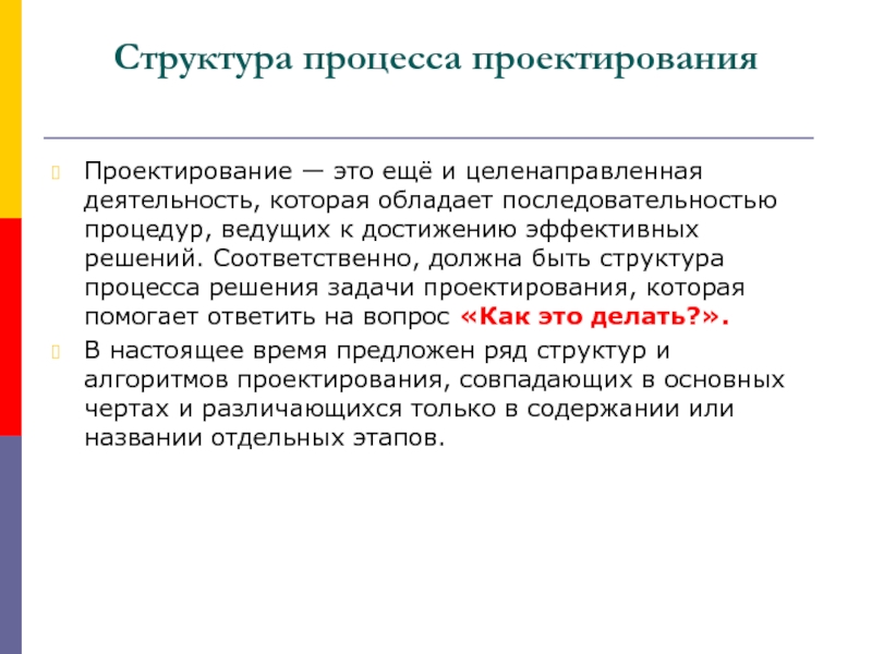 Проектирование, как осознанная целенаправленная деятельность, обладает определённой структурой -