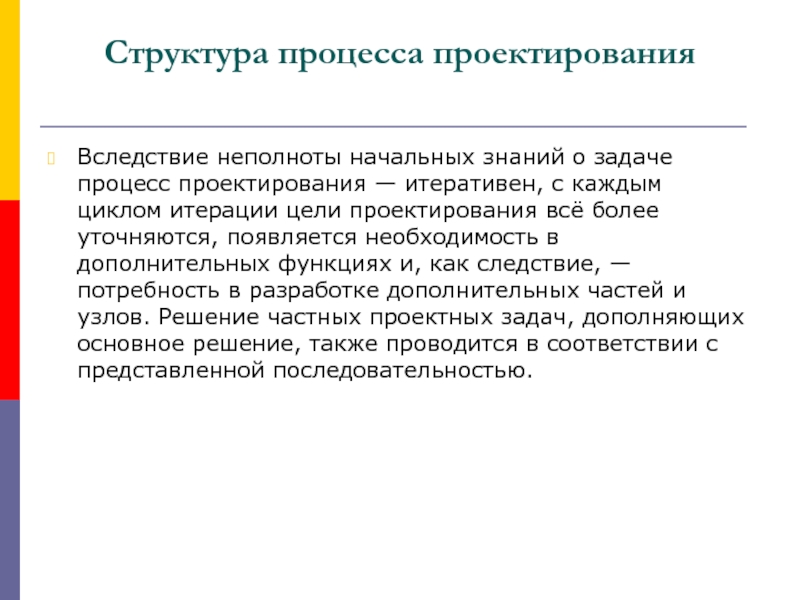 Вследствие неполноты начальных знаний о задаче процесс проектирования —