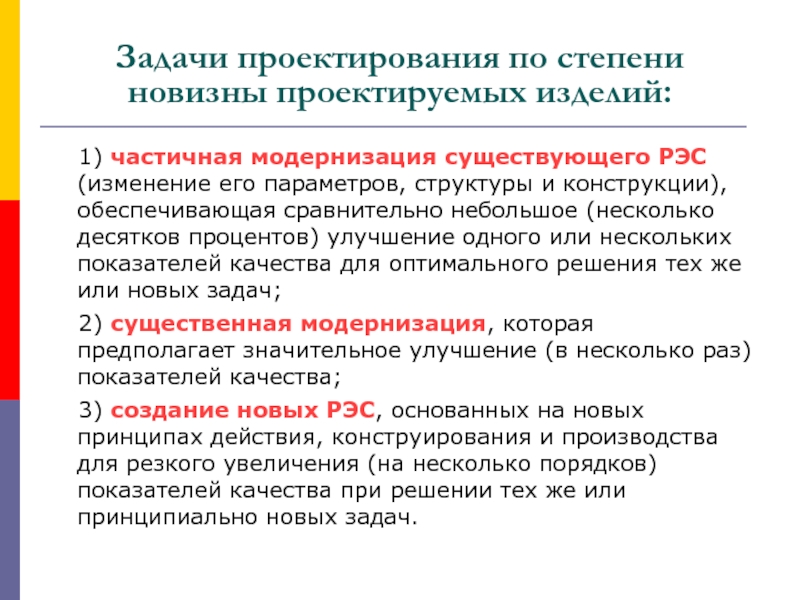 Слайд 3Задачи проектирования по степени новизны проектируемых изделий: