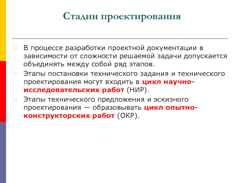 есть состав документации и виды работ, что помогает ответить на вопрос «Что нужно делать?» в процессе проектирования. Основные стадии проектирования: