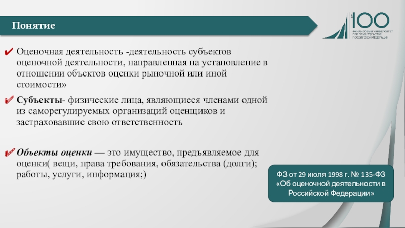 ФЗ от 29 июля 1998 г. № 135-ФЗ «Об оценочной деятельности в Российской Федерации»