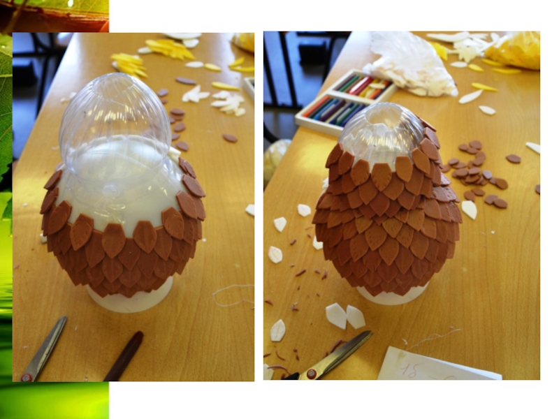 приклеенными 2 перышка (их приклеиваем уже на готовом изделии, чтобы