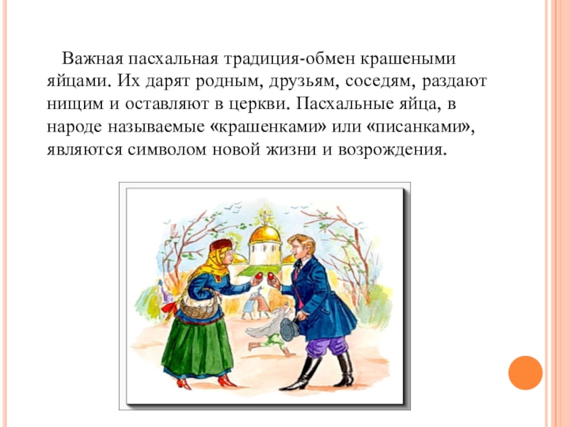 Слайд 10 Важная пасхальная традиция-обмен крашеными яйцами. Их дарят