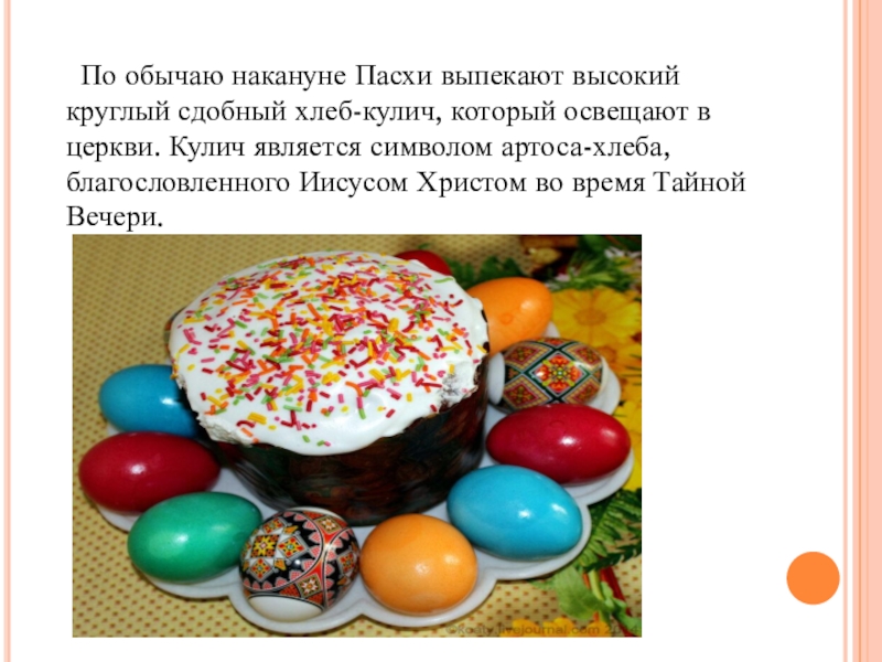 Слайд 5 По обычаю накануне Пасхи выпекают высокий круглый