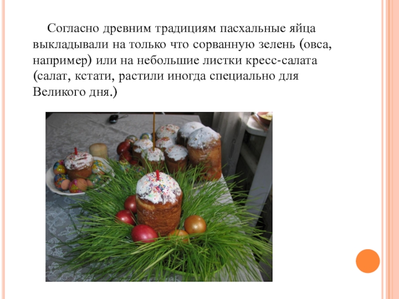 Слайд 9 Согласно древним традициям пасхальные яйца выкладывали