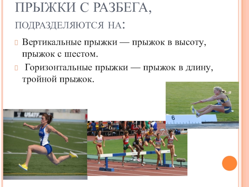 Слайд 14ПРЫЖКИ С РАЗБЕГА, подразделяются на: