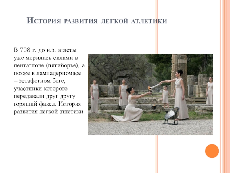 эстафетном беге, участники которого передавали друг другу горящий факел. История развития легкой атлетики