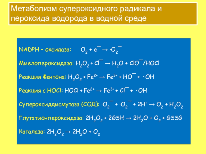 Может образовывать ОН радикалы в реакции с ионами железа: