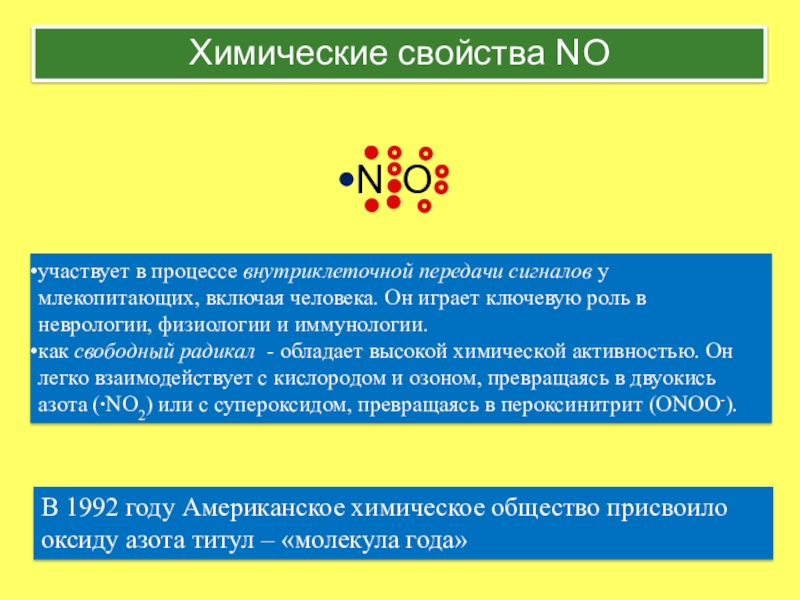 В 1992 году Американское химическое общество присвоило оксиду азота титул – «молекула года»