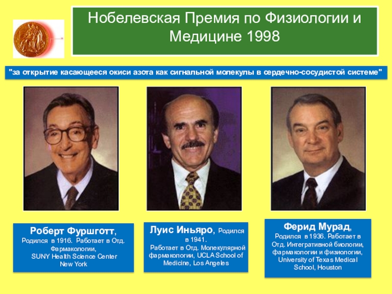 "за открытие касающееся окиси азота как сигнальной молекулы в сердечно-сосудистой системе"