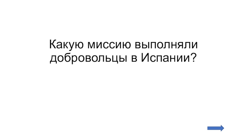 Слайд 27Какую миссию выполняли добровольцы в Испании?