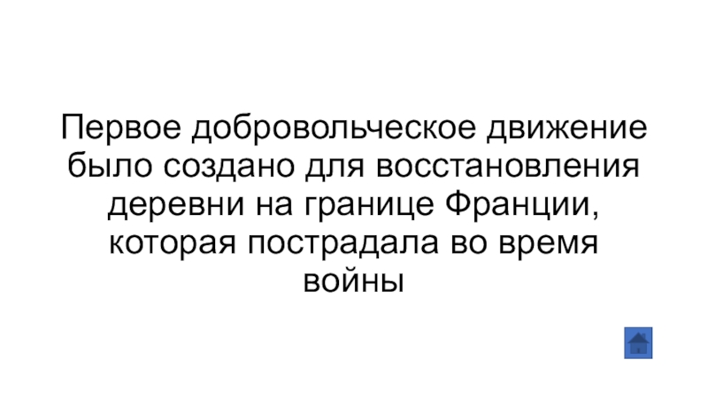 Слайд 16Первое добровольческое движение было создано для восстановления деревни на границе