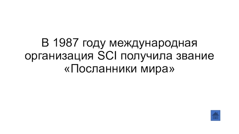 Слайд 10В 1987 году международная организация SСI получила звание «Посланники мира»