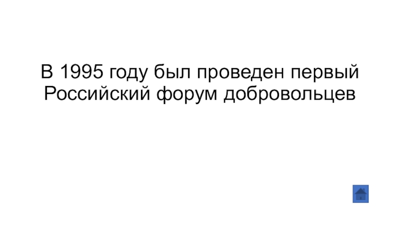Слайд 12В 1995 году был проведен первый Российский форум добровольцев