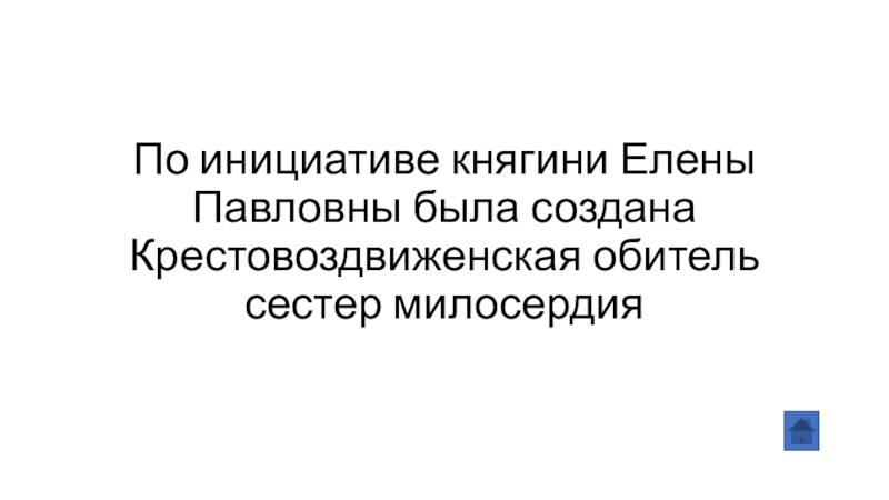 Слайд 34По инициативе княгини Елены Павловны была создана Крестовоздвиженская обитель сестер