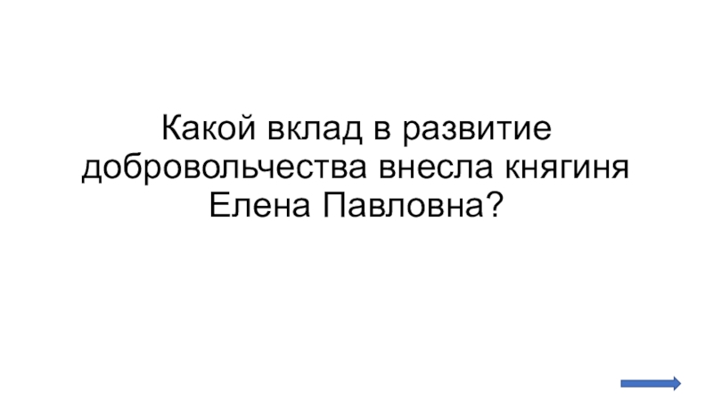 Слайд 33Какой вклад в развитие добровольчества внесла княгиня Елена Павловна?