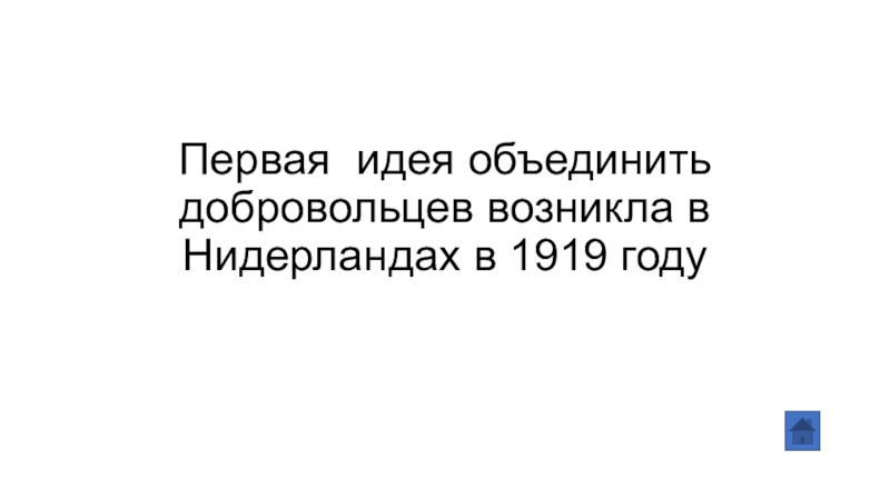 Слайд 4Первая идея объединить добровольцев возникла в Нидерландах в 1919 году