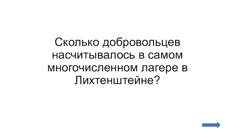 Слайд 23Сколько добровольцев насчитывалось в самом многочисленном лагере в Лихтенштейне?
