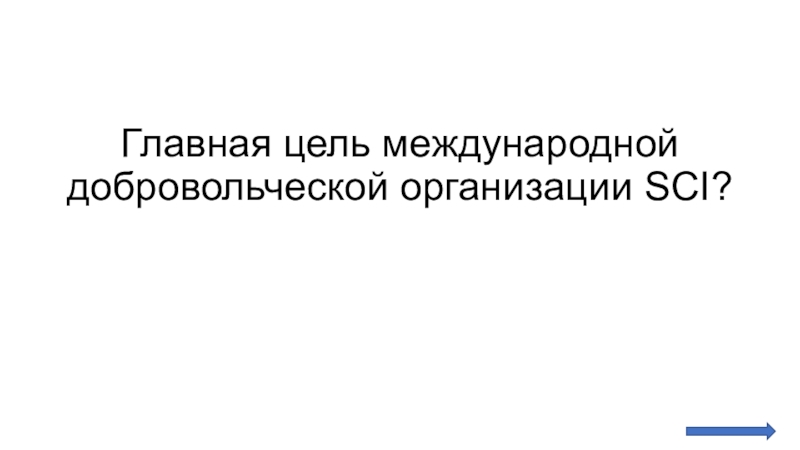 Слайд 29Главная цель международной добровольческой организации SCI?