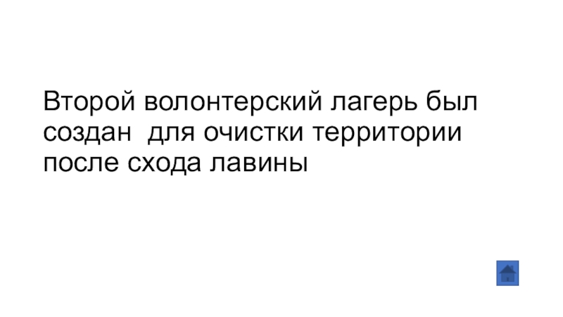 Слайд 22Второй волонтерский лагерь был создан для очистки территории после схода