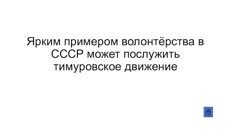 Слайд 38Ярким примером волонтёрства в СССР может послужить тимуровское движение