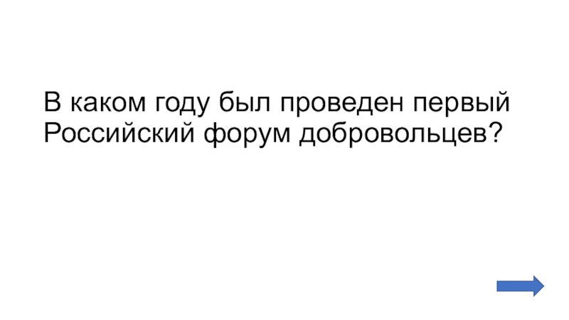 Слайд 11В каком году был проведен первый Российский форум добровольцев?