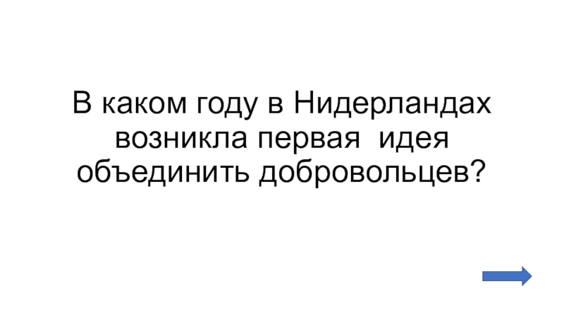 Слайд 3В каком году в Нидерландах возникла первая идея объединить добровольцев?