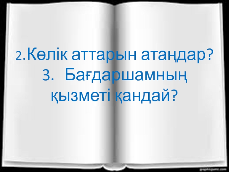 2.	Көлік аттарын атаңдар? 3.	Бағдаршамның қызметі қандай?