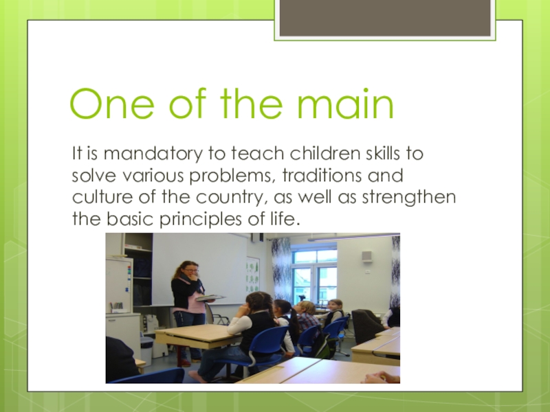 One of the mainIt is mandatory to teach children skills to solve various problems, traditions and culture
