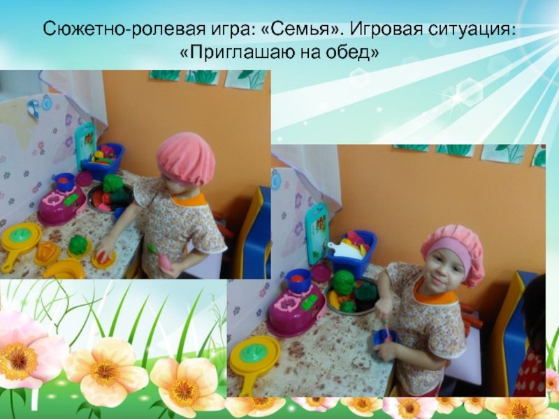 Слайд 13Сюжетно-ролевая игра: «Семья». Игровая ситуация: «Приглашаю на обед»