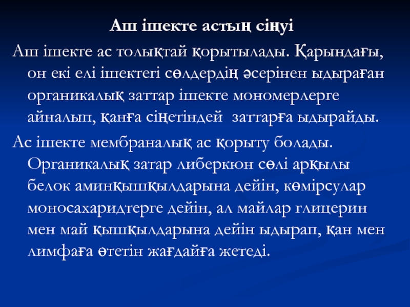 Аш ішекте ас толықтай қорытылады. Қарындағы, он