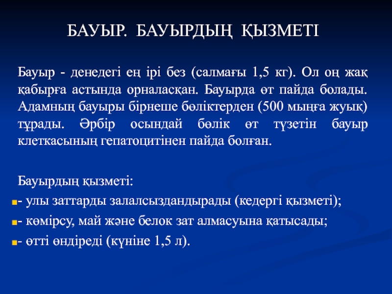 Бауыр - денедегі ең ірі без (салмағы 1,5
