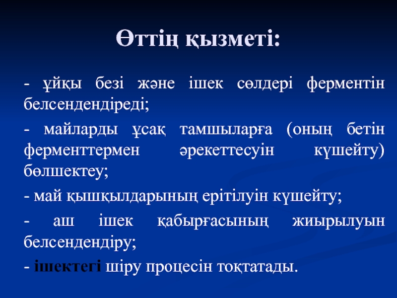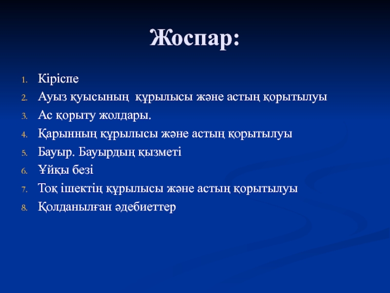 Тақырыбы:Асқорыту жүйесі. Асты асқазан мен ішектердің қорыту үрдістері. Бауыр. Ұйқы без