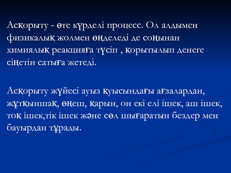 Асқорыту - өте күрделі процесс. Ол алдымен физикалық жолмен өңделеді