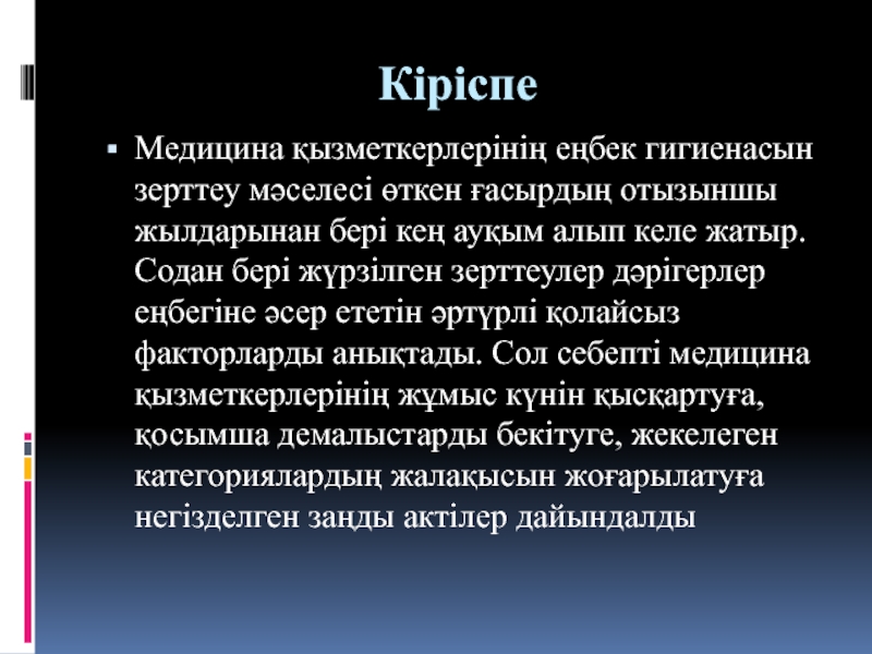 Медицина қызметкерлерінің еңбек гигиенасын зерттеу мәселесі өткен ғасырдың отызыншы жылдарынан