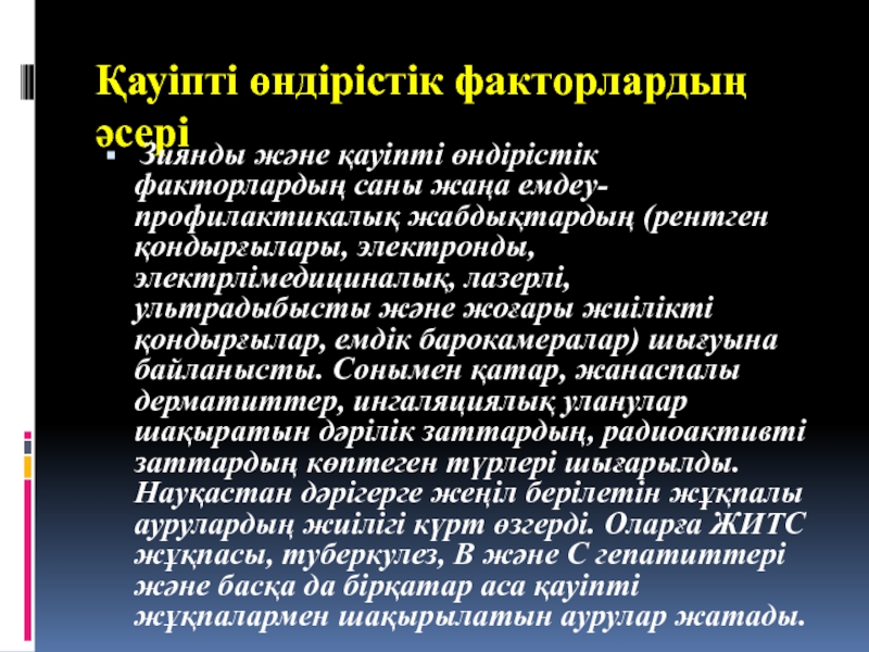 Слайд 4Қауіпті өндірістік факторлардың әсері