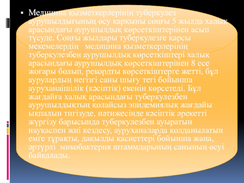Слайд 9Медицина қызметкерлерінің туберкулез аурушылдығының өсу қарқыны соңғы 5 жылда халық