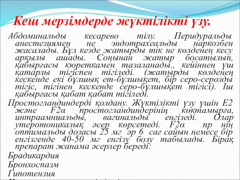 Слайд 18Кеш мерзімдерде жүктілікті үзу.