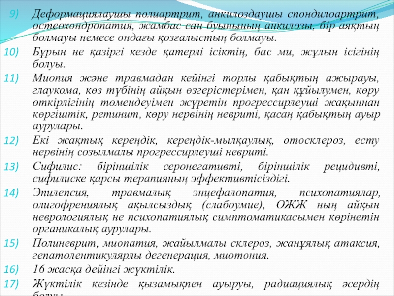 Слайд 5Деформациялаушы полиартрит, анкилоздаушы спондилоартрит, остеохондропатия, жамбас сан буынының анкилозы, бір