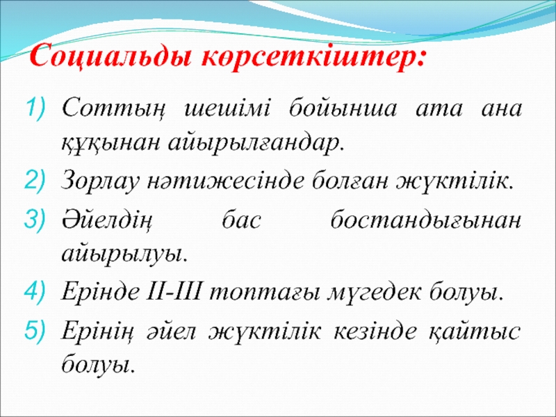 22 аптаға дейін кеш мерзімдерде аборт медициналық және социалдық көрсеткіштер бойынша жасалады.