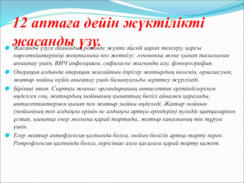 Слайд 712 аптаға дейін жүктілікті жасанды үзу.