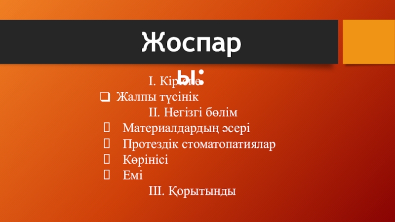 Слайд 2Жоспары: