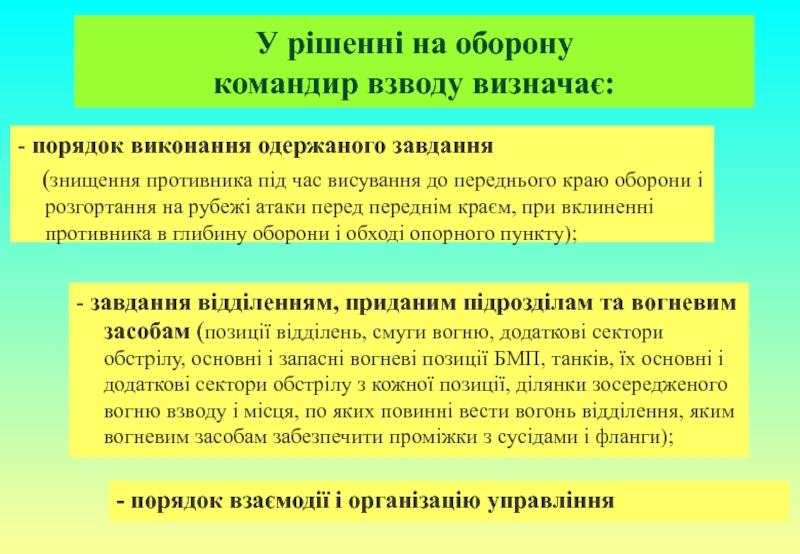 3. Зміст і порядок роботи командира взводу при організації оборони.