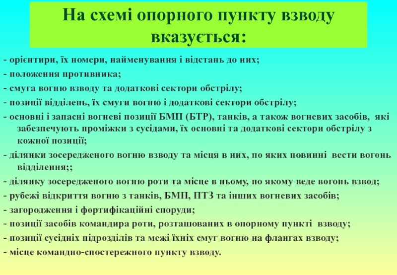 Інженерне обладнання опорного пункту взводу та позицій відділень.
