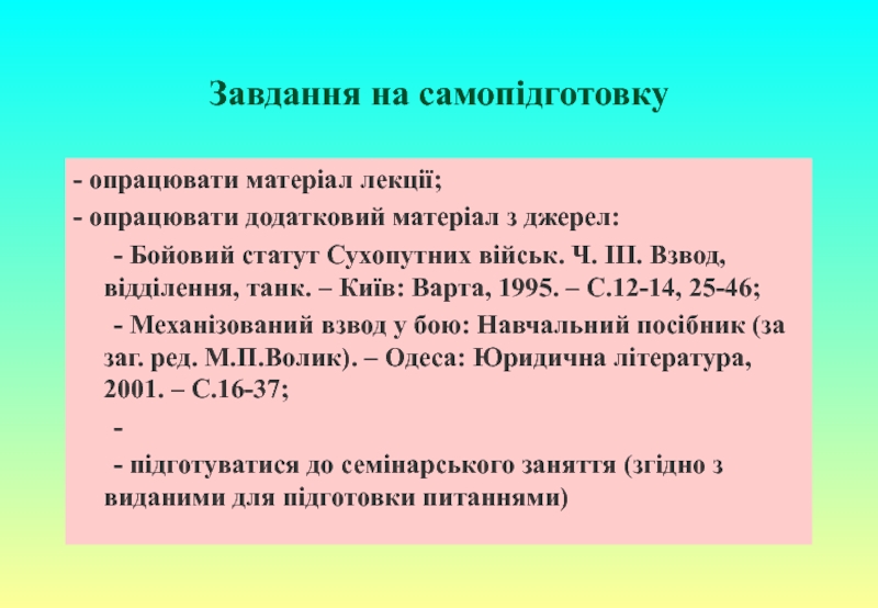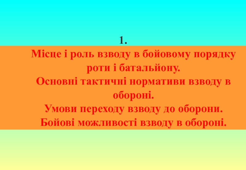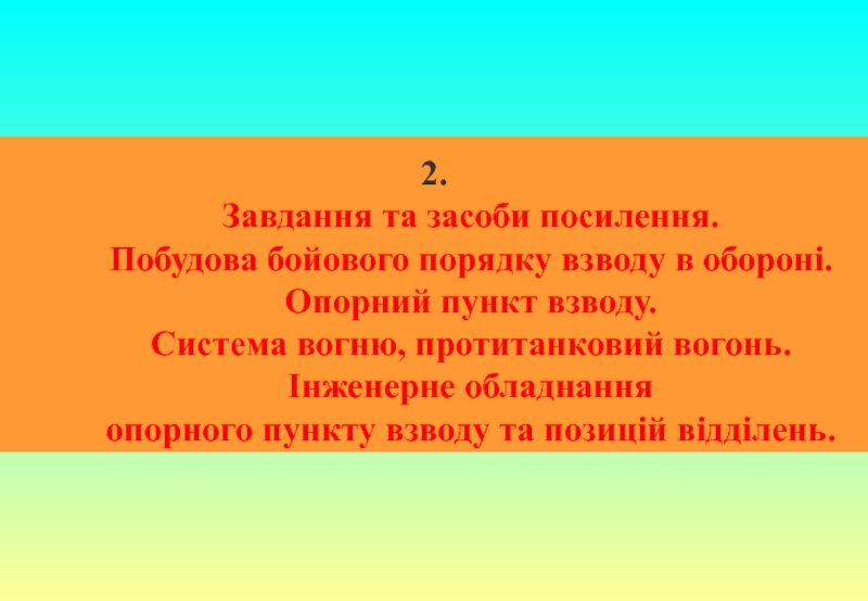 2. Завдання та засоби посилення. Побудова бойового порядку взводу в обороні.