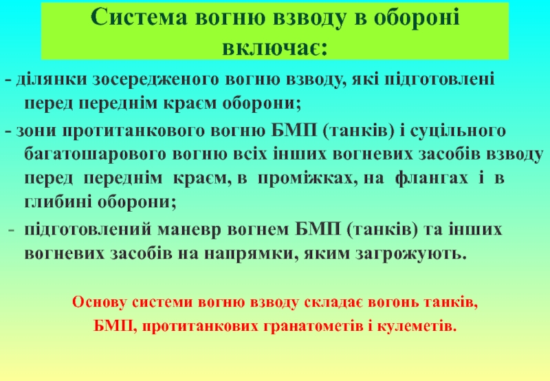 Умови переходу взводу до оборони. Бойові можливості взводу в обороні.