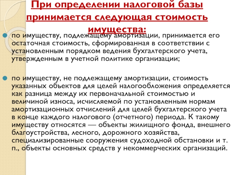Слайд 16При определении налоговой базы принимается следующая стоимость имущества: