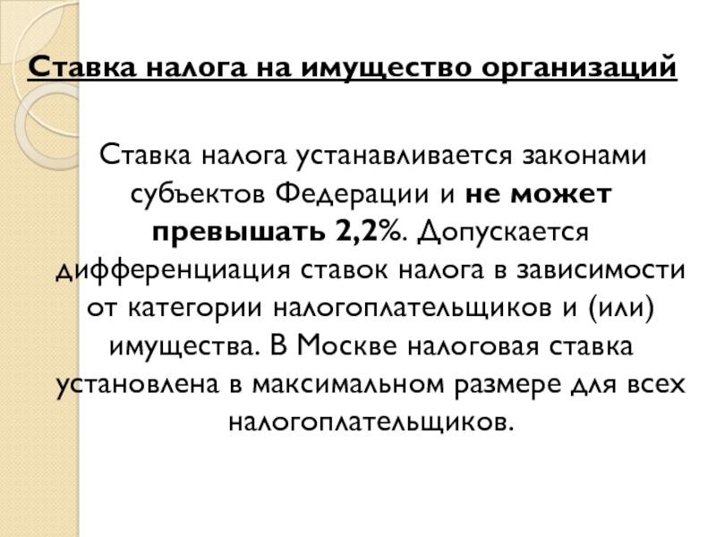 субъектов Федерации и не может превышать 2,2%. Допускается дифференциация ставок
