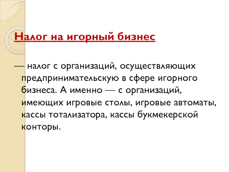 сфере игорного бизнеса. А именно — с организаций, имеющих игровые